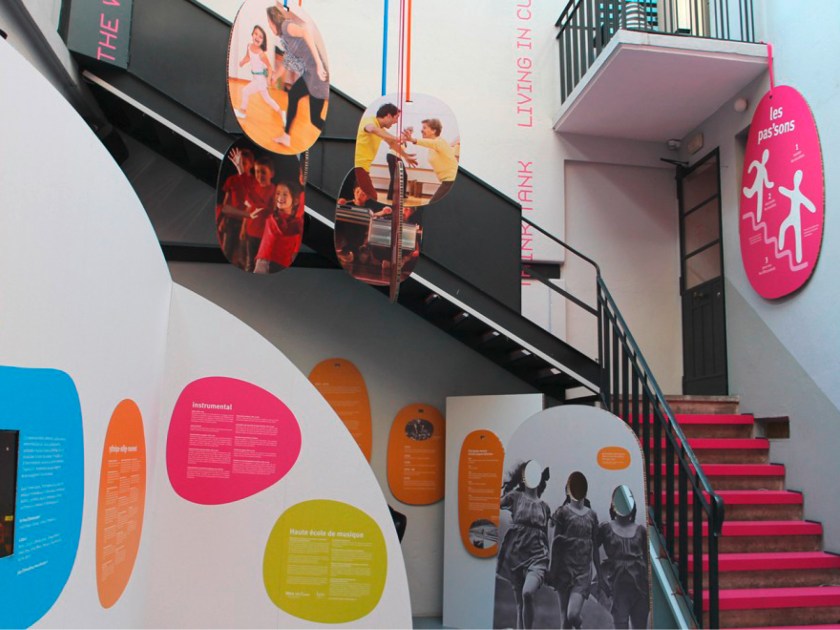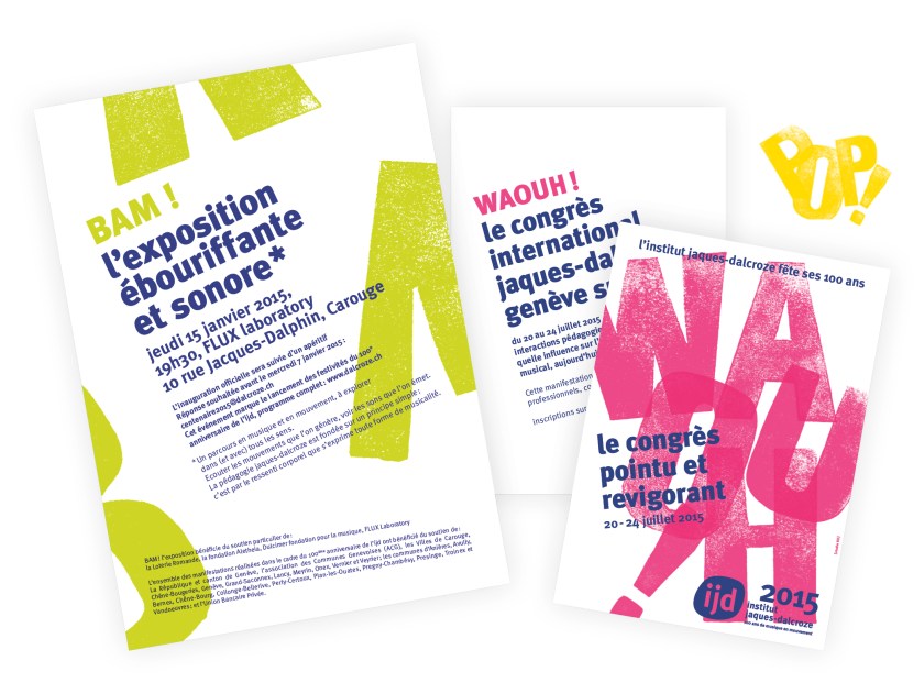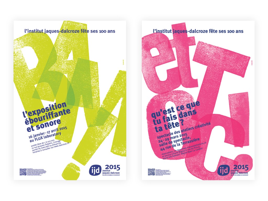 Communication des divers événements pour le 100e anniversaire de l’IJD, dont l’exposition ludique et interactive qui permet de découvrir les moteurs de la pédagogie Jaques-Dalcroze: musique, mouvement et improvisation.