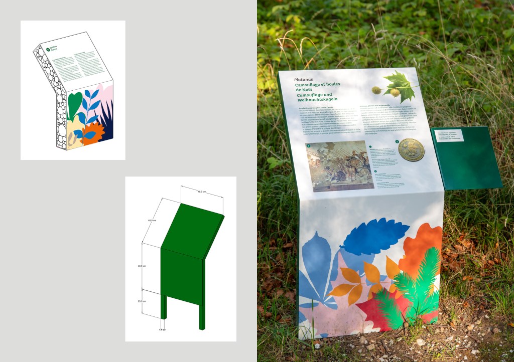 Traitement des images et mise en page des nombreux supports extérieurs de signalétique du Jardin, ainsi que des brochures, flyers et affiches en trois langues.