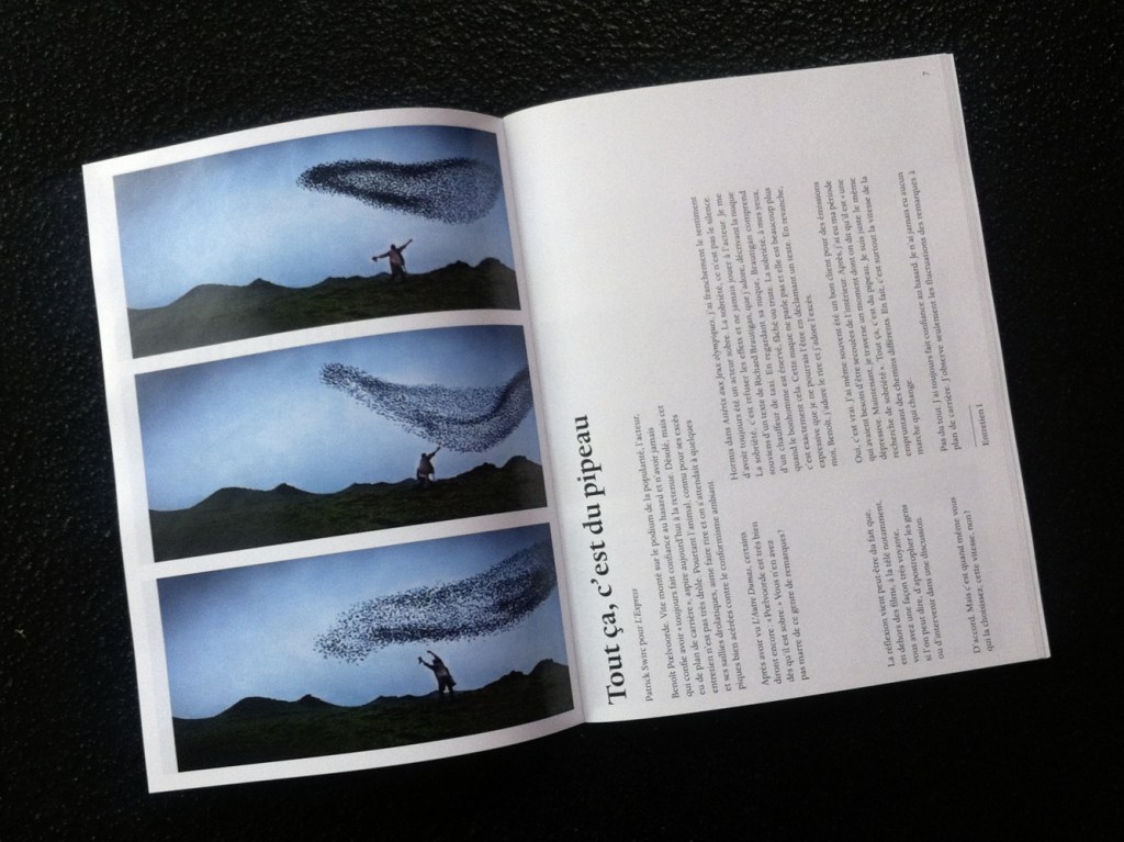 Un format magazine au papier glacé pour ce travail d’édition sur le thème Célébrité. Une seule fonte et deux sens de lecture: dualité de Benoît Pœlvoorde et des rôles qu’il incarne. Impeccable et défectueux, charmeur et répugnant, et son rapport contradictoire à la célébrité.