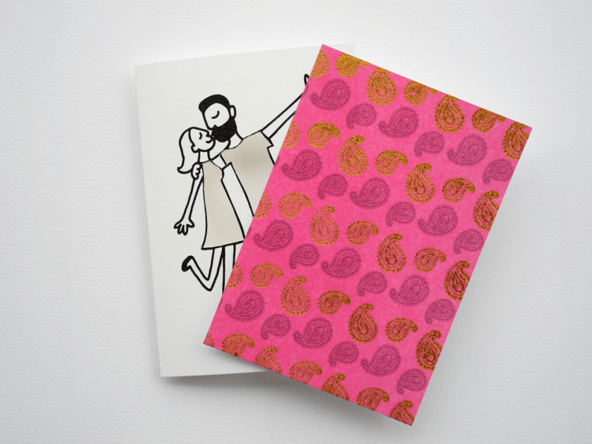 Faire-part de mariage dont le dessin a été réalisé en collaboration avec Juliette Haenni.